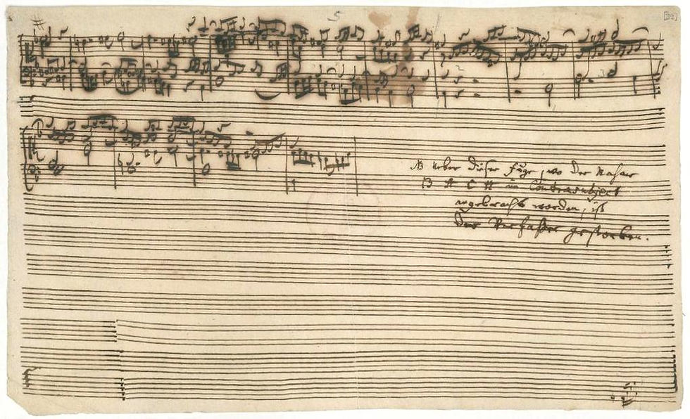 The silence hangs heavily in the air, creating a single moment where one can feel the weight of the absence of sound. But a lone D cuts through the stillness, a flicker of light amidst black oblivion. It is followed by eleven other notes, a simple melody, but one that will be the very core of one of the greatest musical masterpieces to ever be conceived. This twelve-note melody becomes entwined and enveloped in an intricate accretion of variations, counterpoints, and modified themes, all based on the original twelve-note motif. The entire collection of variations comprises what is considered to be Bach’s most ambitious undertaking, the Art of the Fugue, meant to serve as an intensive study of the fugue as an entity. Already a complex and multifaceted piece, Art of the Fugue gains a whole new level of depth and significance when placed inside its historical context,amidst the story of its creation and the demise of its creator. During the two hundred and fifty years of its existence, Art of the Fugue has acquired quite the reputation, as it has become enshrouded in a web of mystery and mystique. However, when we strip away these layers, the piece retains its magnitude, as the sheer mastery of the piece is enough to merit substantial renown and reverence. In the early 1740’s, Bach began work on what many consider to be his most monumental project ever, Art of the Fugue. Bach intended this piece to be an extensive study of “the art of fugal counterpoint,” exploring the possibilities and various outcomes that can be produced by manipulating a single theme (“The Art of the Fugue”). Bach was not commissioned to compose this piece, nor was the idea inspired or suggested to him by anyone else; in creating Art of the Fugue, Bach was “alone in his genius” (Herz, 4-5). The result of Bach’s endeavors was a collection of eighteen fugues, all in the same key, and all based on the same principle theme. This principle theme was modified and transformed into an astonishing number of over twenty different major variations and one hundred minor variations (“The Art of the Fugue”). Art of the Fugue is a piece of special interest not only because of its musical genius, but also because it has become endowed with an aura of mystique. This stems from the fact that one of the movements, Contrapunctus XIV, was left unfinished. By the late 1740’s, Bach was in the process of revising and finalizing Art of the Fugue. However, his chronic eyesight problems progressively worsened, and he was forced to resort to surgery. After two failed cataract operations, in 1750, Bach lost his sight completely for the last four months of his life (Herz, 5). Despite these adverse conditions, Bach continued work on Art of the Fugue until illness completely overtook him, forcing him to abandon his treasured masterpiece. There is a widespread misconception that because Bach was forced to forsake Art of the Fugue, it was his last creative work. However, during his illness, Bach was able to dictate a revision of one of his earlier chorales to a friend. This fact is generally overlooked, though, helping to perpetuate the myth and sensation surrounding this piece. It made a romantic story—that Bach died pen-in-hand—and one that Bach’s son Carl Philipp Emanuel (who supervised the works publication after Bach’s death) hoped would drive sales. Carl Philipp Emanuel began marketing Art of the Fugue as his father’s ‘last work,’ a story further embroidered in the 2nd edition of 1752, which stated that Bach ‘was surprised by his own death which overtook him while he was in the middle of completing the last fugue’ (“Art of the Fugue”). Even with the help of this marketing myth, however, Art of the Fugue was not well received at first. In fact, during the first five years after Bach’s death, only thirty copies of the printed edition sold (Herz, 4), and the copper engraving plates were sold as scrap metal (“Art of the Fugue”). This unpopular reception was partly due to the fact that the fugue was losing respect as an art form towards the latter half of the eighteenth century. The fugue fell out of favor, beginning in Bach’s lifetime... Bach was really the last exponent of the fugue and, after his death, the form virtually died with him… Bach's music—and with it the fugue—languished in obscurity for nearly a century. Even Mozart and Beethoven had to be introduced to the beauties of Bach's fugues by an aficionado, Baron von Swieten… and both composers began to incorporate fugal elements into their compositions. It was only in the mid-19th century—thanks to a revival begun by Felix Mendelssohn and Robert Schumann—that Bach's keyboard works, cantatas, and instrumental music made their way back into concert programs (“Art of the Fugue”). Even after the reemergence of Bach’s music, Art of the Fugue was often considered too abstract and abstruse. It is only in recent times that musical scholars have begun to excavate the treasure of Art of the Fugue and appreciate the minutiae of this piece. Scholars have started to question long-standing beliefs about the work, and solve some of the mysteries Art of the Fugue has to offer. Having stripped the piece of some of its romantic mystique, establishing through handwriting analysis and Bach’s personal correspondence that Art of the Fugue was indeed not his last creative piece and dispelling the myth that he died “pen-in-hand,” scholars have been able to focus on deeper questions and mysteries Art of the Fugue holds. Recently, many scholars have begun to ponder questions such as whether or not Bach intended Art of the Fugue to be performed, or if it was only meant to be a theoretical work, its sole purpose to be studied and appreciated for its applications of musical theory. Bach's contemporaries regarded Art of Fugue to be a practical work—one that would be both studied and played. C.P.E. Bach's advertisement announcing the first editi